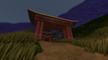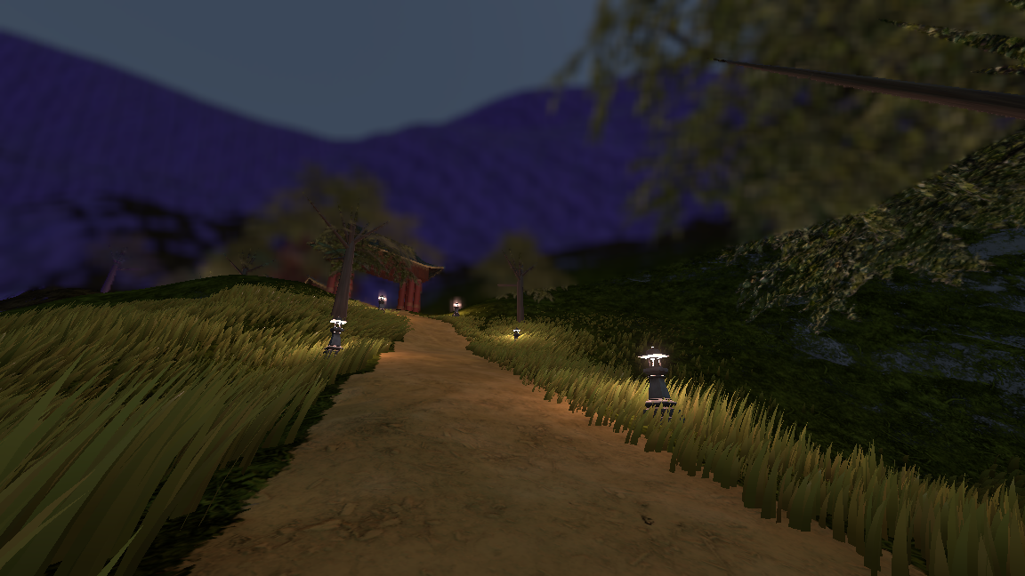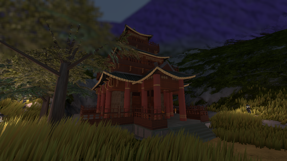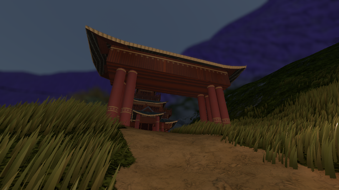 A relaxing night-time scene at a mountain temple built for Spring 2026 MMP271 - 3D Game Development.